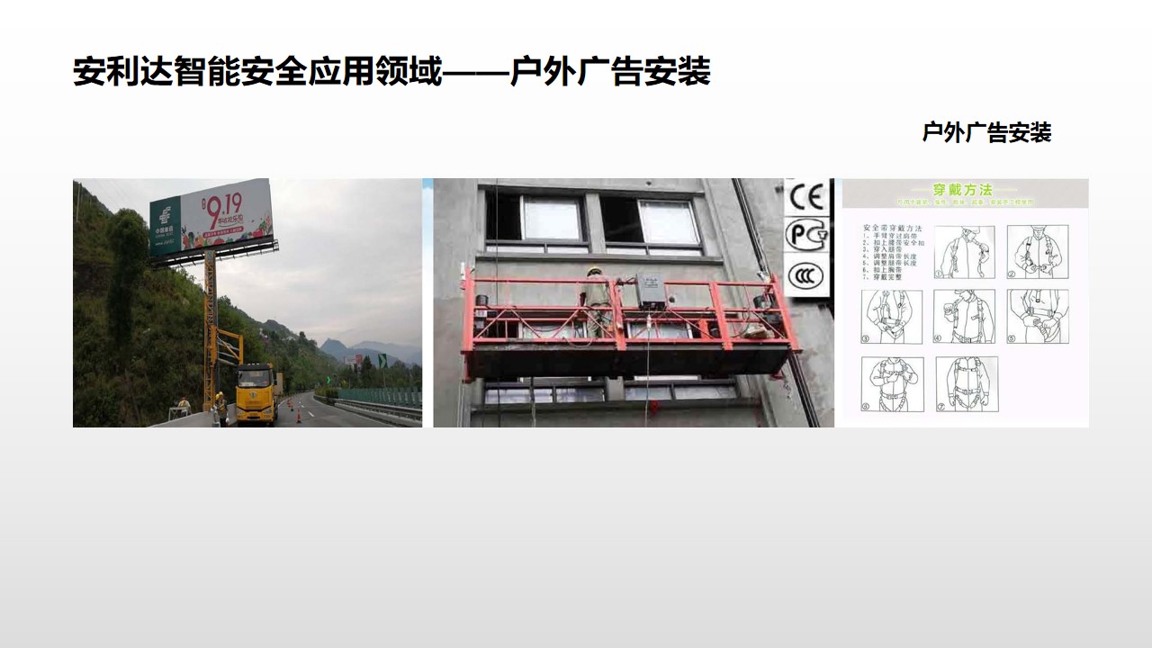 安利達智能安全帶具有SOS應急求救報警系統、GPS定位功能、疲勞報警等9大功能,有效降低高空墜落的風險,該產品質量由太平洋保險公司承保。